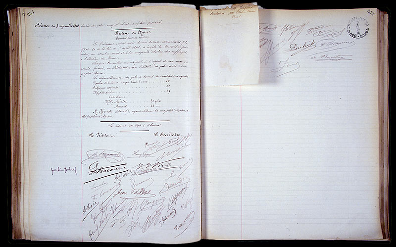Procès-verbal d'élection d'Édouard Herriot par le conseil municipal de Lyon, 3 novembre 1905, plumitif. Lyon, Archives municipales, 1217 Wp 167