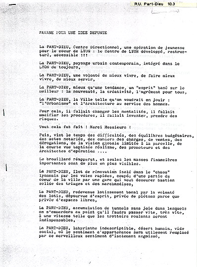 Notes de Charles Delfante, architecte urbaniste, au sujet de la restructuration du quartier de la Part-Dieu, 1971. Lyon, Archives municipales, 111 II 21