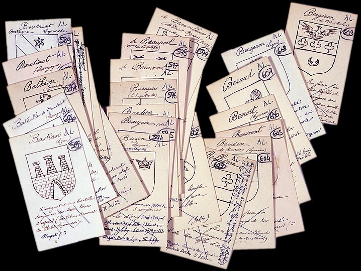 Fiches héraldiques de Jean Tricou (Lyon 1890-Lyon 1977). Lyon, Archives municipales, 15 II 114