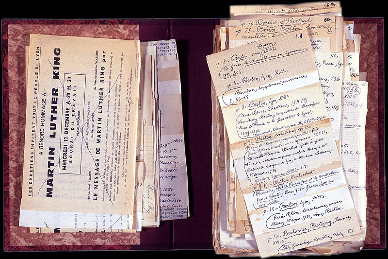 Notes prises par Jean Tricou (Lyon 1890-Lyon 1977) sur les familles Bertin. Lyon, Archives municipales, 15 II 24