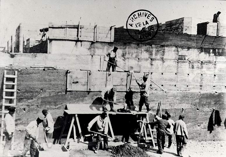Établissement des fondations de l'hôpital de Grange-Blanche, cliché anonyme, extrait d'un album photographique, vers 1914-1918. Lyon, Archives municipales, 959 Wp 140