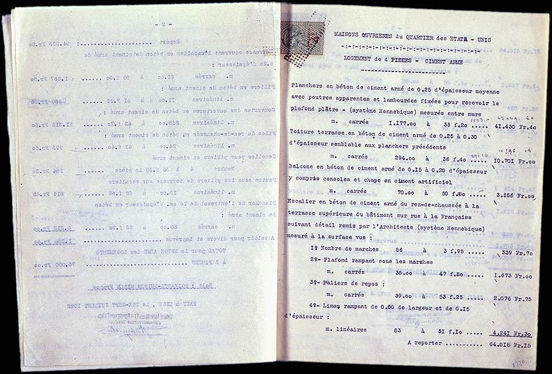 Bordereau des prix pour les maisons ouvrières de la Cité industrielle des États-Unis, 11 septembre 1922. Lyon, Archives municipales, 481 Wp 14