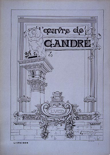 Couverture de livraison de L'uvre de Gaspard André, dessin de Paul Cret, n. d., vers 1897. Lyon, Archives municipales, 3 S Atlas 6