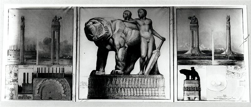 Monument aux morts pour le confluent du Rhône et de la Saône à Lyon, 1920, projet de Tony Garnier, cliché Sylvestre, négatif sur plaque de verre.