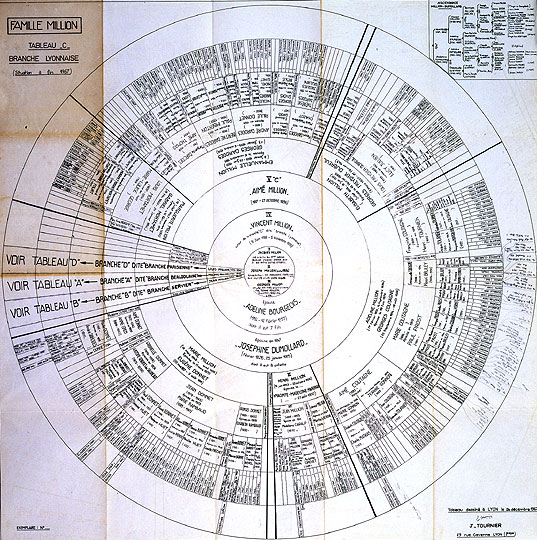 Roue généalogique de la famille Million, dressée par Jacques Tournier, 1967. Collection particulière