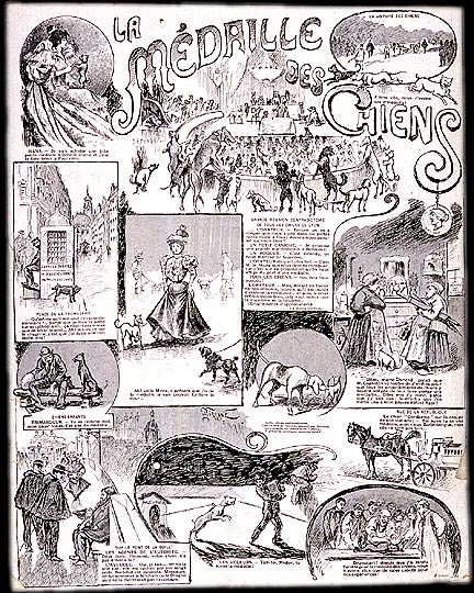 La médaille des chiens, vignettes humoristiques dessinées par G[irrane], n. d., [vers 1897], lithographie. Lyon, Archives municipales, 94 II (n° inv. 3375)