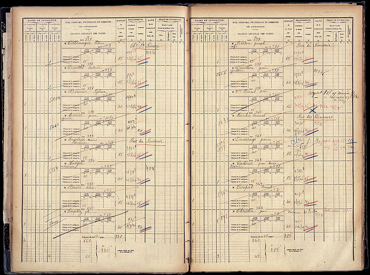 Taxe municipale sur les chiens, rôle primitif pour le 5ème arrondissement, année 1926. Lyon, Archives municipales, 310 Wp 1164