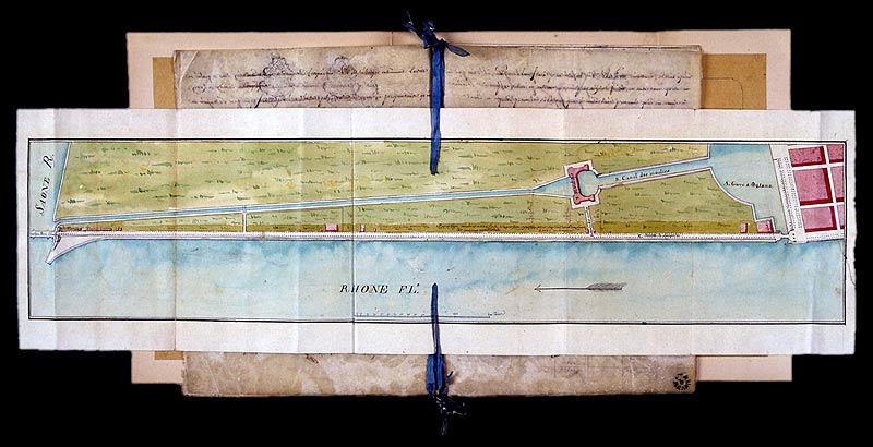 Projet de canal, pièce annexée à un traité passé entre le Roi et la compagnie Perrache pour fixer les obligations et engagements respectifs des deux parties, 1789.